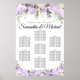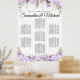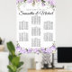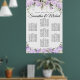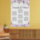 Lindos rosas roxos e verdes e balançando bordas cries no topo e no fundo deste gráfico floral. Os nomes dos casais de casamento são escritos em uma fonte clássica. Este elegante quadro de assentos é parte da coleção Violette que contém sinais, programas, menus, cartões de lugar e decoração de mesa que permitem personalizar fácil e financeiramente a sua cerimônia de casamento e recepção.