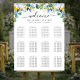 Dê as boas-vindas aos convidados com este elegante cartaz de assentos de casamento com aquarela floral em amarelo e azul. Belas flores em aquarela com detalhes florais azuis e flores amarelas criam um design inspirado em um jardim botânico deslumbrante. Tons azuis e dourados empoeirados combinados com uma paleta de casamento azul e amarela tornam-no ideal para celebrações de verão e primavera.