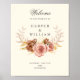 Poster de boas-vindas, com uma crista com rosas de aquarela em um tema de cor de champanhe, castanho de chocolate e rosa-pincel. Ouro azul gravado em detalhes e folhagem dourada. Por favor, note: os detalhes gravados em ouro são uma imitação, não uma folha de ouro.