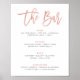 LINA • Este belo sinal de menu de bar de casamento em rosa dourado e branco associa o glamour elegante da textura de folha de rosa dourado "falsa" com a informalidade do texto e das fontes manuscritas. A coleção combina bem com as cores de casamentos de outono. Além disso, com o toque de conto de fadas em um estilo moderno, esta coleção é uma escolha incrível para decorações de casamento de princesa e outros eventos temáticos da Cinderela.