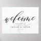Mínimo e elegante sinal de boas-vindas para mostrar como um belo sinal de boas-vindas de convidado. O sinal de boas-vindas design apresenta "Bem-vindo" em uma tipografia de caligrafia moderna com script preto. Personalize com o nome da noiva e do noivo e a data do casamento. Uma sutil cor branca clara e cinza de fundo mármore adiciona uma aparência sofisticada e suave.