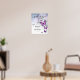 Bem-vindos convidados para seu dia especial com uma elegante poster de casamento de borboletas roxas. Criada com a arte original da aquarela por Raphaela Wilson, o único sinal personalizado de boas-vindas do partido mostra um arco gracioso de borboletas monarcas em tons suaves de roxo, acentuado com prata e preto. As asas bonito dessas belas de jardim também incorporam um padrão floral suave para um olhar único e luxuoso. O pano de fundo da borboleta brilha com matizes de cinza clara, turquesa, azul real, violeta e pedra prateada branca rústica. Personalize esses sinais elegantes com seus nomes e data, escolhendo entre vários estilos de caligrafia, fontes modernas, cores de fundo e até opções de borboletas douradas. Ajuste a modelo editável para se adequar aos casamentos com temas de borboletas, Cinderella quinceañeras, um conto de fadas de 16 anos, um bebê ou chá de panela com tema de princesa, e muito mais. Ajuste o tamanho de 16x20 para atender às suas necessidades. Torne seu evento de conto de fadas realmente memorável! Categoria: cartazes de casamento elegantes, cartazes de casamento bem-vindos com borboletas; e cartazes de casamento de borboletas de água colorida. Cores do tema do casamento da borboleta púrpura: roxo real, lavanda, lilás, violeta azul escuro, cinza clara, cinza escura, prata, preto e branco.