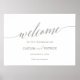 Esta elegante poster de boas-vindas para caligrafia verde é perfeita para um casamento simples. A design neutra apresenta um sinal minimalista decorado com tipografia romântica e caprichosa. Personalize o poster com o nome da noiva e do noivo, e a data e o local do casamento.