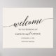 Esta elegante poster de casamento de boas-vindas de creme de caligrafia negra é perfeita para um casamento simples. A design neutra apresenta um sinal minimalista decorado com tipografia romântica e caprichosa. Personalize o poster com o nome da noiva e do noivo, e a data e o local do casamento.