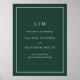 Simples poster de boas-vindas da floresta verde apresentando um design moderno, mas elegante, com "bem-vindo ao nosso casamento" junto com seu monograma, nomes e data de casamento. O texto e a cor podem ser alterados na ferramenta de edição de design. Um design chic e na moda que é excelente para um casal minimalista.