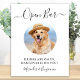 Sinal de barra livre! Caligrafia simples e elegante, este sinal de barra de casamento apresenta barra aberta em caligrafia elegante e as bebidas são por nossa conta, a ressaca fica com você!. Personalize este elegante sinal de casamento com a foto do seu animal de estimação favorito, foto de cachorro, noivado ou foto de casal e nomes! DIREITOS AUTORAIS © 2020 Judy Burrows, Black Dog Art - Todos os Direitos Reservados. Casamento de Cachorro Pet Open Bar Foto Personalizada Bebidas Correm Por Nossa Conta Cartaz