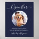 Bar Aberto ! Caligrafia simples e elegante, este letreiro de bar de casamento apresenta Bar aberto em caligrafia elegante, e as bebidas são por nossa conta, ressaca é com você! . Personalize este letreiro de casamento elegante com a foto do seu animal de estimação favorito, foto do cachorro, foto de noivado ou do casal, e nomes! DIREITOS AUTORAIS © 2020 Judy Burrows, Black Dog Art - Todos os Direitos Reservados. Casamento de Cachorro Petisco Bar Aberto Azul-Marinho Foto Personalizada Poster