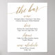 Este letreiro de casamento de caligrafia preta e dourada elegante é perfeito para um casamento simples. O design neutro apresenta um pôster minimalista decorado com tipografia romântica e caprichosa em folha de ouro falsa. Personalize o letreiro com as bebidas disponíveis no seu reception.