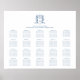 Branco com texto azul escuro e plano de mesa do monograma de desenho da crista folha. Edite este gráfico de mesas de assentos de casamento com seus próprios assentos e nomes de convidados. Este plano é para até 20 mesas. Design e crista originais com coroa cardíaca, entrelaçados com folhas e bagas desenhando à mão por Sarah Trett para www.mylittleedenweddings.com exclusivamente em Zazzle.