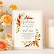 Uma bela queda de aquarela arrojada deixa decorar os lados desta poster boho de outono. Ótimos tons de vermelho, laranja e marrom da borda botânica deste impressão de creme. Um design boêmico moderno com cores brilhantes e divertidas.