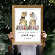 Dê as boas-vindas aos seus convidados com este divertido cartaz de casamento temático de dinossauros com noivos T-Rex engraçados em um belo prado de flores silvestres pré-históricas. Se você e seu parceiro amam dinossauros, esta é a maneira perfeita de trazer algum amor dino incrível para o seu dia especial. Ilustrações únicas de Tyrannosaurus rex e flores silvestres em aquarela colorida em tons de azul, rosa, roxo, amarelo, laranja e verde. Modelos fáceis de usar com tipografia moderna e caprichosa. Arte original da artista Catherine Sweetman.