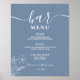 Poster Casamento Dusty Blue | Menu do Bar de Flores Silve