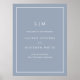 Simples poster de boas-vindas, azul e empoeirado, com um design moderno, mas elegante, com "bem-vindo ao nosso casamento" junto com seu monograma, nomes e data de casamento. O texto e a cor podem ser alterados na ferramenta de edição de design. Um design chic e na moda que é excelente para um casal minimalista.