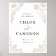 Design apresenta uma caligrafia vintage elegante inspirada em fontes de script tradicionais. O design inclui um delicado arco floral desenhado à mão inspirado pela rellis de jardim com rosas, flores e folhas entrelaçadas. Perfeito minimalista e elegante para o casamento tradicional e de jardim.