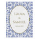 Este design em azul poeira e branco no estilo clássico é elegante e tradicional. Um presente atencioso de casamento ou aniversário ou decoração para o dia do casamento.