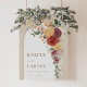 Lindo letreiro de boas-vindas inspirado em boho com várias flores em aquarela misturadas com folhagens verdes e grama pampas aérea em vários tons de vermelho, rosa, amarelo e verde. Personalize o letreiro com sua própria mensagem! Se desejar alterar o estilo da fonte, cor ou posicionamento do texto, basta clicar no botão "Personalizar Mais".