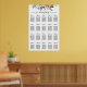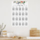Layout de até 20 Mesas, definido por número de tabela, não nomes, com até 12 pessoas por mesa. Um texto preto simples no gráfico de assentos branco (o fundo é personalizável); clique em "personalizá-lo" para mover colunas, alterar fontes, cores, cor de fundo ou tamanho do poster. O texto branco sobre versões coloridas também está disponível. Clique e arraste sobre as mesas (começando de fora da página) para mover mais de uma mesa por vez. Flores de cor branca e vermelha, com um toque de bagas de zimbro roxas ao longo do topo.