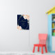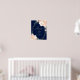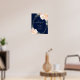 Poster Casamento Floral Dourado de Pêssego Azul-Marinho E