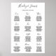 Simples gráfico de assentos de casamento preto e branco com seus nomes e números de suas mesas em um roteiro elegante manuscrito. Todo o texto está preto sobre branco e pode ser alterado para qualquer cor desejada. A letra chic da mão acrescenta um toque romântico a esta design minimalista.