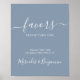Favoritos! Caligrafia simples, mas elegante, este sinal de favor de casamento apresenta caligrafia elegante, e obrigados para nos celebrar. Personalize este símbolo de casamento elegante com os seus nomes! COPYRIGHT © 2020 Judy Burrows, Black Dog Art - Todos Os Direitos Reservados. Casamento Moderno Favorece Poster Azul com Dosagem Personalizada