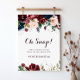 Esta placa de água ilustrada com casamento outono oh snap é perfeita para um simples casamento ou chá de panela. A design apresenta marinho de aquarela pintada à mão artística azul, burgundy, vermelha, rosas de pincel e peônias com folhas verdes elegantes, inspirando a colorida beleza do outono idílico. Personalize a placa com a hashtag de casamento.