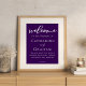 Este poster de casamento roxo real apresenta uma bela tipografia branca num sólido impressão violeta profundo para uma cerimônia noturna no inverno. Escrito minimalista e uma cor ousada fazem sua impressão de recepção e se destacam da multidão.