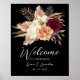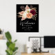 Dê as boas-vindas aos seus convidados com uma elegância atemporal através deste letreiro de casamento romântico em borgonha e preto com flores. Com rosas dramáticas e grama pampas em um fundo preto profundo, este design sofisticado combina o romance sombrio do outono com sofisticação boho. Personalize com seus nomes e data de casamento para criar uma primeira impressão marcante na entrada da sua cerimônia ou recepção.