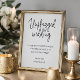 Este moderno cartaz de casamento sem dispositivos apresenta um estilo minimalista preto e branco com uma mistura de caligrafia e fontes simples. Será perfeito para pedir aos seus convidados de casamento que permitam que você tenha um casamento privado, livre das redes sociais.
