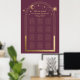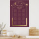 Gráfico de Assentos de Casamento Astronomia Sol Lua Estrelas Ameixa Dourada Casamento Sinal Download Digital Instantâneo Impressão de Cartaz features uma moldura de sol, lua e estrelas douradas em fundo de ameixa. Dentro da moldura está o texto "Bem-vindos" em elegante caligrafia dourada e as informações personalizadas do gráfico de assentos da recepção de casamento. Projetado por você por ©2022 Evco Studio www.zazzle.com/store/evcostudio