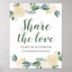 A placa de poster de casamento convida os convidados a compartilhar o amor e as fotos de casamento que eles capturam nas redes sociais com uma hashtag de casamento específica. Design apresenta uma camada de aquarela floral que molda o texto com rosas pintados, flores ranúnculus e folhas. O esquema de cores inclui tons neutros de branco, cor-de-rosa-pincel, creme, ouro e verde. Perfeito para um evento de primavera ou verão.