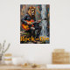Esta pintura impressionante captura um leão majestoso, adornada com óculos de sol e uma jaqueta de couro, proporcionando uma poderosa performance acústica enquanto tocava num tronco. Atrás dele, uma cachoeira vibrante cai num riacho azul, criando um palco natural. O uso de pinceladas ousadas e texturizadas pelo artista enfatiza a beleza robusta do cenário e a atitude de "Rock or Die", dando vida a este concerto inesperado.
