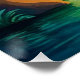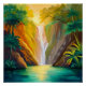 A IA criou interpretação da minha descrição representando o pôr do sol atrás de uma cascata como sua cor clara na paisagem circundante enquanto as árvores iluminam as bordas do rio.