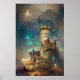 Poster Castelo De Pintura De Petróleo, Castelo Na Noite E