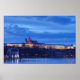 O lindo castelo de Praga do lado do rio em "hora azul"