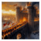 Uma ilustração digital de um castelo, mostrando as paredes torrenciais, torres majestosas e detalhes intrincados como ele estava no seu auge.