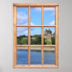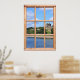Este castelo antigo data dos tempos medievais. O castelo tem um lugar maravilhoso, olhando para a costa, e tem uma praia arenosa embaixo. A foto foi tirada num dia de verão, com céu azul e nuvens lisas. Vocês podem ver esta cena fascinante bem na moldura de madeira de uma janela falsa, criando a ilusão de uma perspectiva histórica de seu quarto.