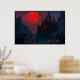 Poster of the dark and tenebrous gothic fortress of an ancient Vampire Lord. A supernatural crimson red Moon illuminates the spires of the castle, just as it casts its gloomy shadow over the shacks of the scared villagers. And then the bats appear, swooping down from the battlements to the valley below in a hunger crazed frenzy, a frenzy for Human blood. The Vampire Lord and his minions would feed tonight, and the night was just begining... This artwork was created with ImageFX and upscaled with Leonardo.ai. Further editing was done by me.