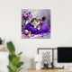 Poster Cat with Purple Eyes in Purple Yarn and Flowers