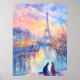 A romantic watercolor-style digital painting of two cats sitting side by side, gazing at the Eiffel Tower as twilight falls over Paris. The pastel sky and glowing city lights reflect beautifully on the Seine River, creating a dreamy and peaceful atmosphere. This artwork blends love, travel, and feline charm—perfect for those who adore Paris and poetic storytelling through art.