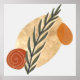 Um design inspirado em boho de formas simples em cores rústicas de marrom, bege e laranja com um caule de planta floral como foco.