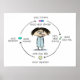 Um desenho engraçado de uma pessoa medicada vestindo uma camisola e pantufas de felpudo cercadas por um círculo de comprimidos. "A insônia de purga, causa indisposição no estômago, cura mal-estar no estômago, causa erupção cutânea com comichão, cura a erupção cutânea, causa depressão, cura a depressão, causa insônia." Uma banda desenhada humorística, embora deprimente, para quem conhece o círculo da medicação. Esta poster engraçada faz um presente legal para farmacêuticos, enfermeiros, médicos e pacientes. Visite o Doodle World de Jenn para posters ainda mais divertidos e ideias estranhas de presentes.