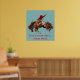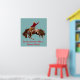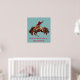 Uma obra de arte inspirada no ocidente, que inclui um vaqueiro cavalgando um pônei pintado. Altere a cor e a mensagem de fundo na seção personalizada.