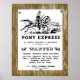 Este é um panfleto histórico para a companhia Pony Express. Eu adicionei minha fronteira original de madeira e unhas de arte gráfica. A empresa Pony Express queria que os cavaleiros entregassem correio através do país, desde Missouri até o oeste selvagem de Sacramento em 10 dias. Eles sempre anunciaram para jovens que não tinham gravatas para a família porque era uma longa e perigosa rota para andar. Os cavaleiros atravessaram a América viajando pela rota de cavalo para entregar o correio dos EUA. Naquela época a rota abrangia apenas dois Estados, Missouri e Califórnia, porque o resto do país era território. Essa era uma empresa de curta duração porque, um ano depois, o telégrafo e a ferrovia logo seguiriam uma rota pela América também. Em abril de 2010 será o aniversário de 150 anos do Pony Express.