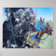 Pôster cavaleiros medievais históricos a jorrar em cavalo