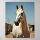 Foto de um magnífico cavalo americano entre as casas do Texas Um cavalo de origem árabe com uma bela cor clara