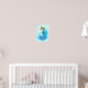 Poster num design de aquarela de um cavalo de mar colorido e esquisito, com tons de bronzeado, turquesa e tons de aqua. A cauda enrolada e textura espessa lhe dão personalidade, e o fundo macio turquesa adiciona um sonho subaquático.