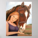 A arte original mostra uma cena equestre com um retrato de uma jovem que oferece ao seu cavalo favorito um cubo de açúcar. Pintura de Jacqueline Edwards. Personalize o nome e o texto da data ou exclua se você preferir nenhum.