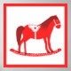 Esta maravilhosa poster de Natal apresenta uma imagem de arte digital de um belo cavalo de balanço estilo escandinavo. O cavalo é vermelho com um homem vermelho escuro, cauda e cascos. O cavalo amigável está sorrindo. Tem uma sela branca e rédeas com padrões bonito do estilo folk vermelho Scandi na sela, incluindo sol, lua e estrelas e corações e flores. A base do cavalo de balanço é vermelha e coberta de folhas brancas bonito. A design foi inspirada pelo cavalo sueco Dala.