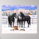 Uma família de cavalos de quarto preto no seu curral de fazenda de inverno.