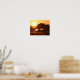 Pele de bucha e cavalo de dun pastoreando o poster de fotos do nascer do sol. Dimensionado para 14x11